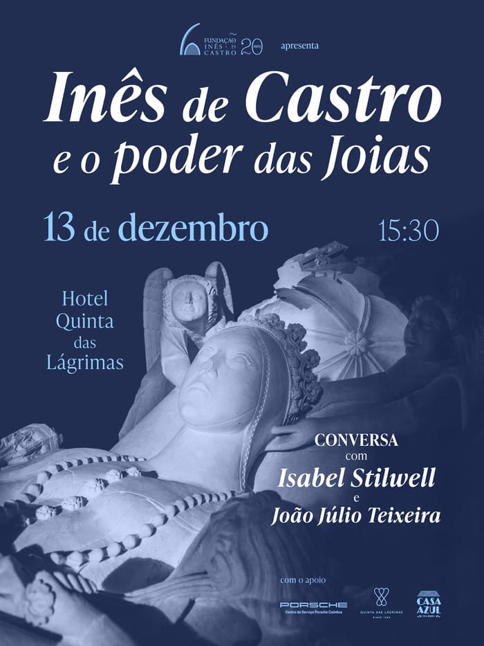 A Fundação Inês de Castro tem muito gosto em divulgar mais uma iniciativa integrada nas Comemorações dos 700 anos de nascimento de Dona Inês de Castro e dos 20 anos da Fundação Inês de Castro, a conversa entre Isabel Stilwell, escritora e jornalista e João Júlio Teixeira, perito e historiador de joalharia antiga, intitulada “Inês de Castro e o poder das Joias”que terá lugar no Sábado, dia 13 de Dezembro, às 15h30 no Hotel Quinta das Lágrimas, em Coimbra.