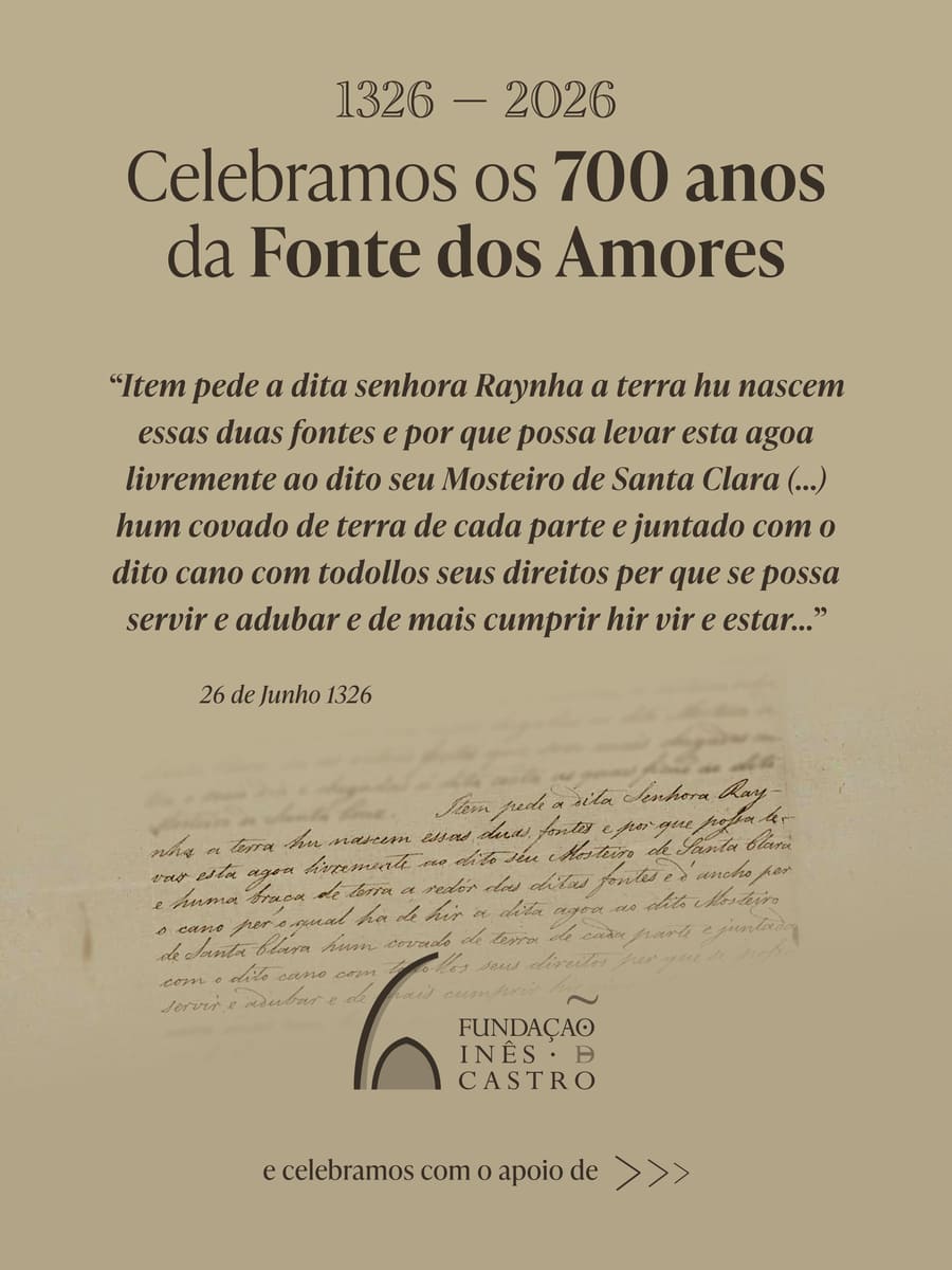 Na imagem, um excerto do manuscrito da ordem da Rainha Santa Isabel para que se mandasse construir o Canal dos Amores datado de 26 de Junho de 1326.