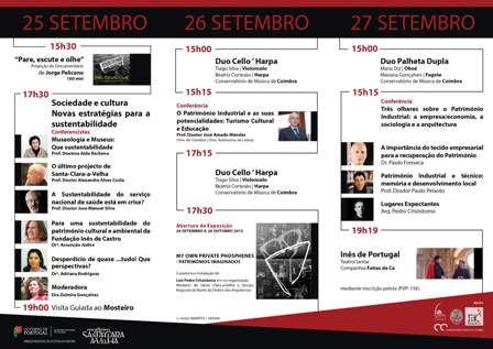 No próximo dia 25 de Setembro a partir das 17h30 no Mosteiro de Santa Clara-a-Velha, em Coimbra e no âmbito das Jornadas Europeias do Património 2015 será apresentada, pela Dr.ª Assunção Júdice, Vogal do Conselho Executivo da Fundação Inês de Castro, a conferência “Para uma sustentabilidade do património cultural e ambiental da Fundação Inês de Castro”.